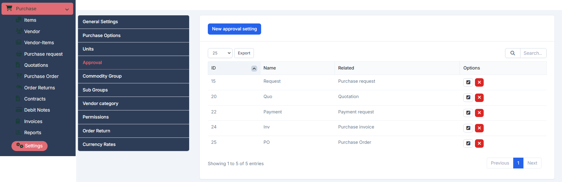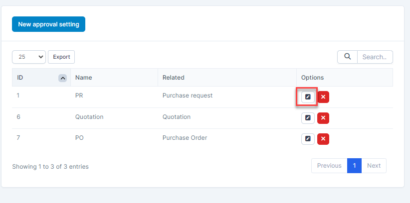 - ნაბიჯი 2. Select Approval პარამეტრები menu -> Select approval setting need to be edited and click რედაქტირება