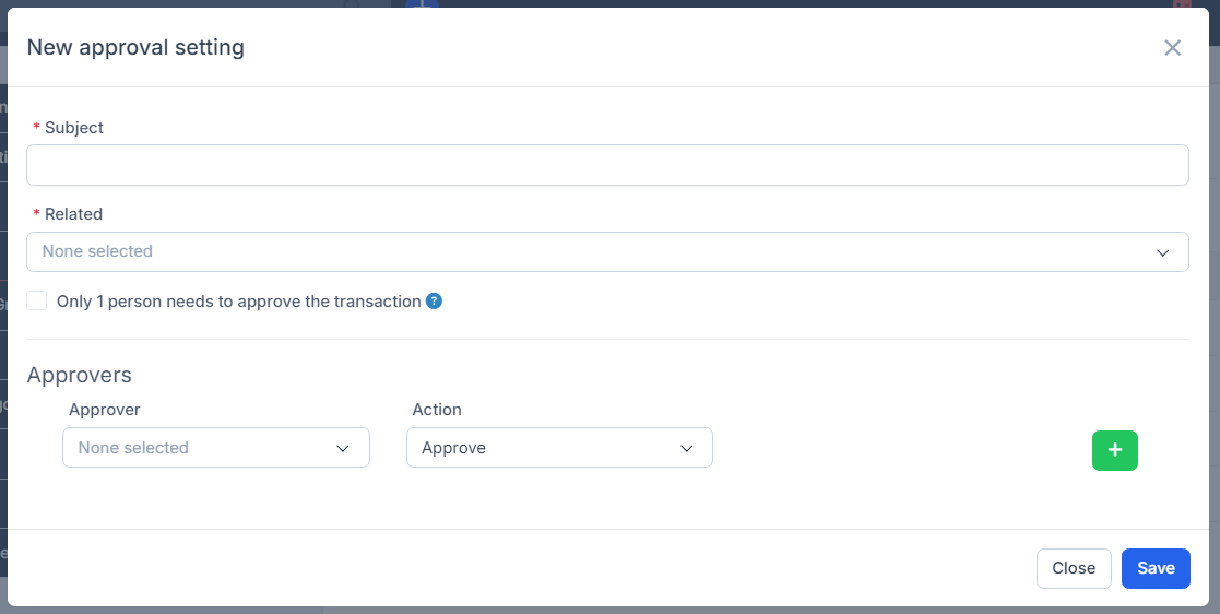 დამატება New Approval Setting