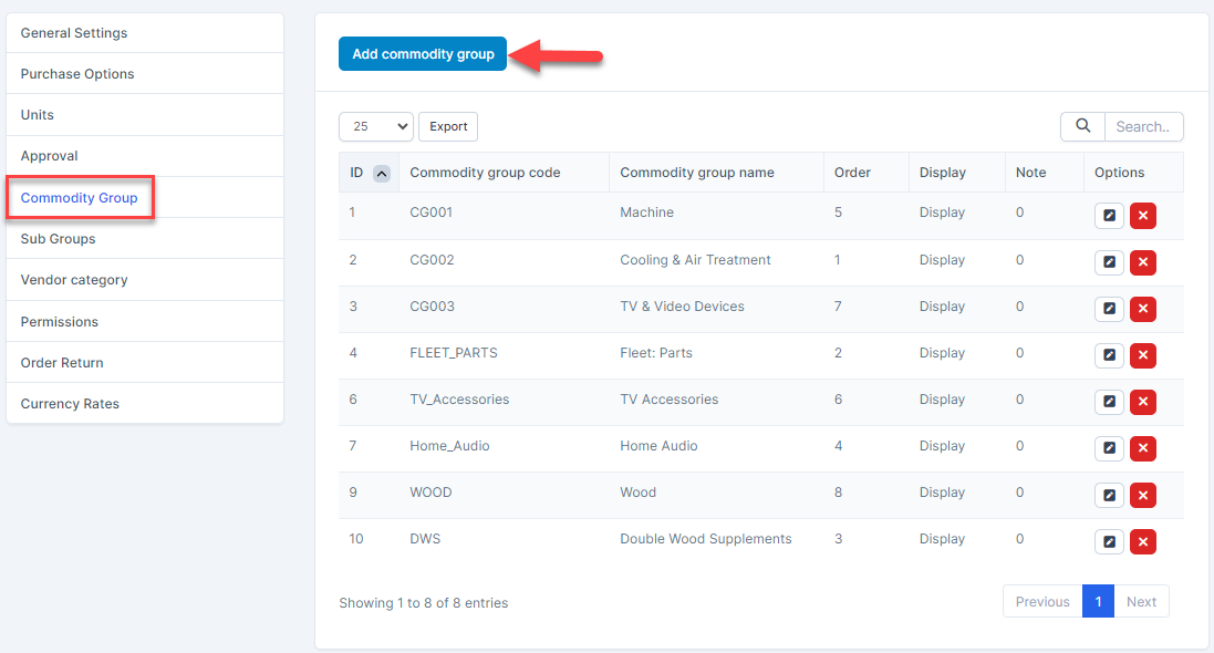 - ნაბიჯი 2. Select საქონლის ჯგუფი menu -> Click on the დამატება commodity group button.