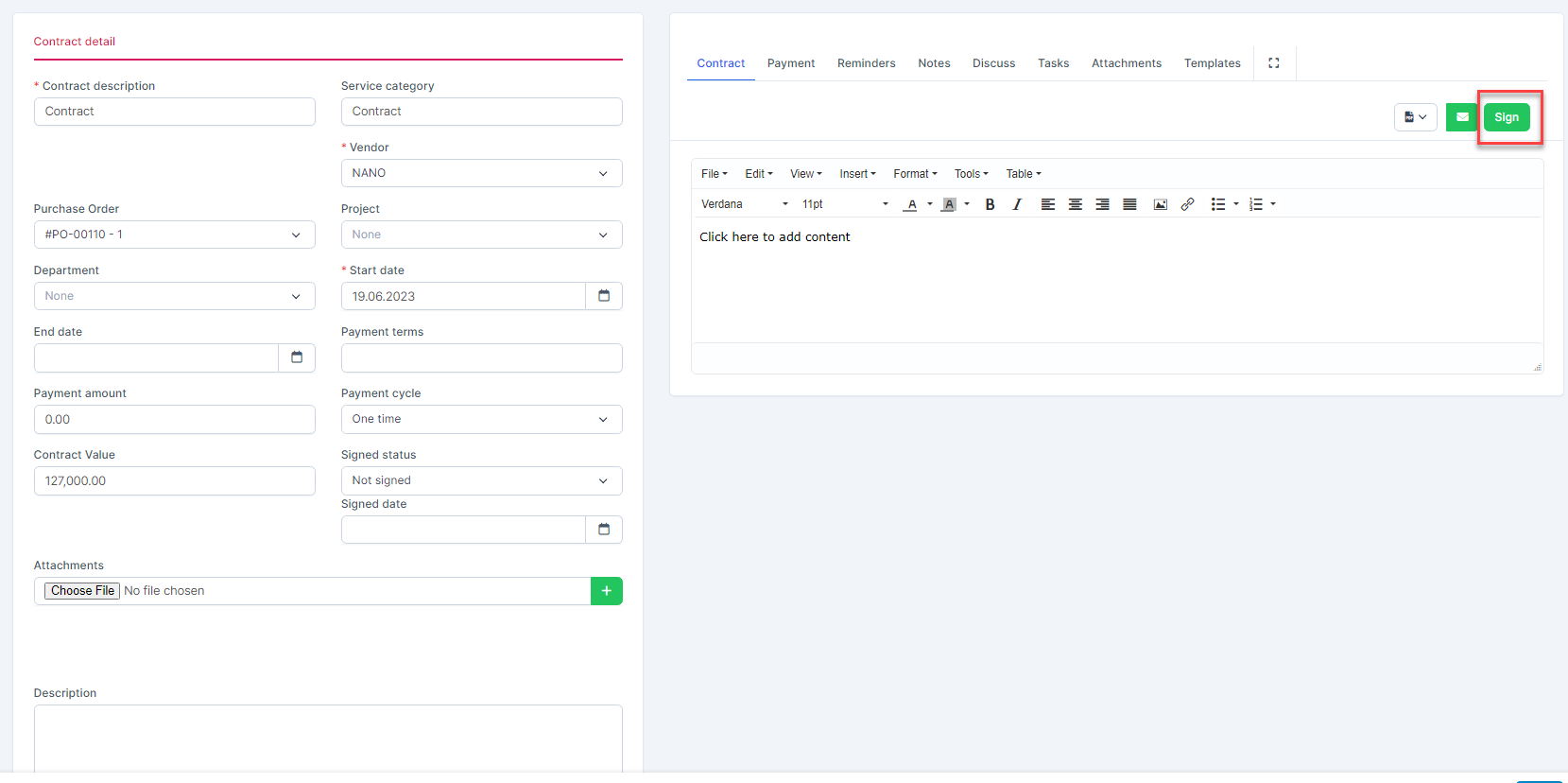 ნაბიჯი 1. Go to contract detail -> click ხელმოწერა