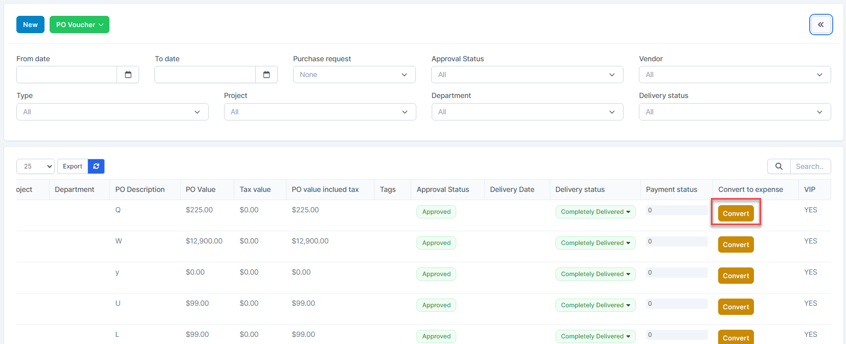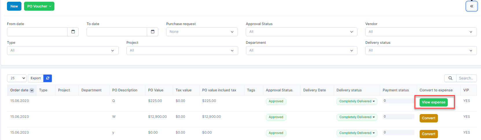 შესყიდვის შეკვეთის ხარჯად კონვერტაცია