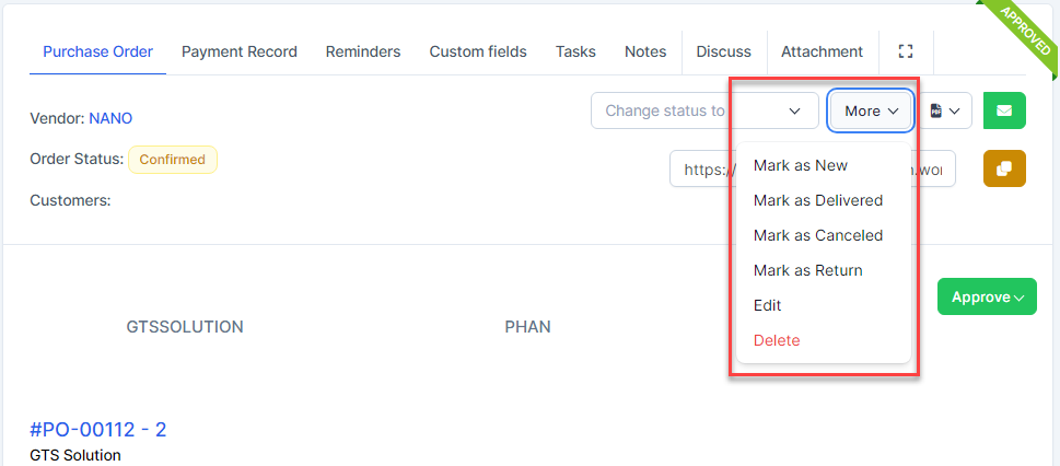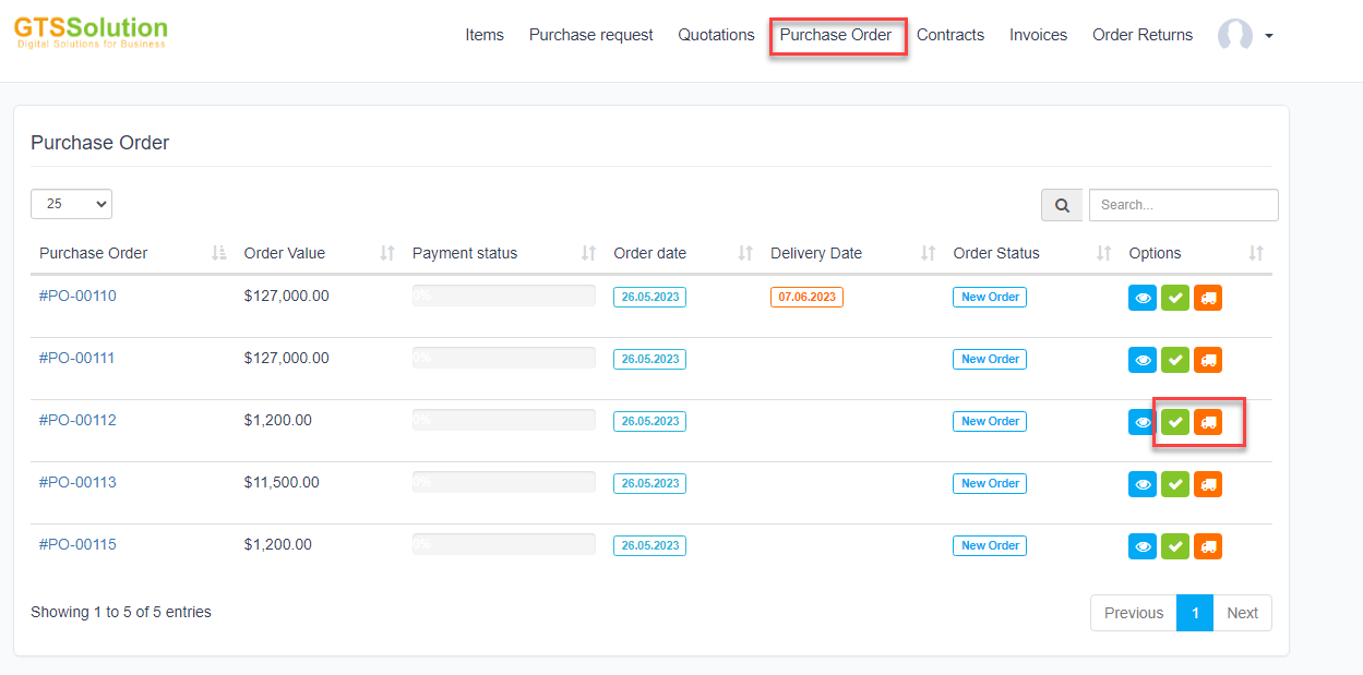 - ნაბიჯი 6. After the purchase order has an approved status, this purchase order will be displayed in the corresponding vendor portal.