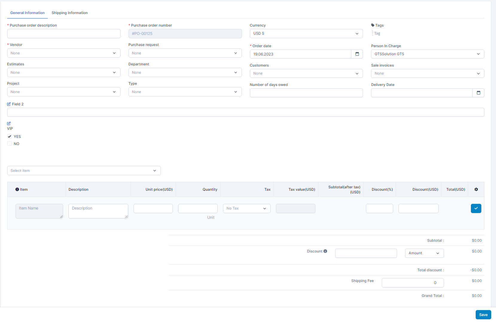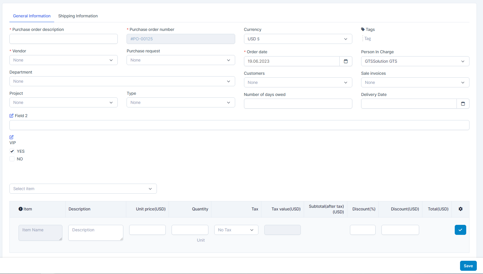 - ნაბიჯი 3. In the დამატება შესყიდვები რიგითობა page, fill the following details: