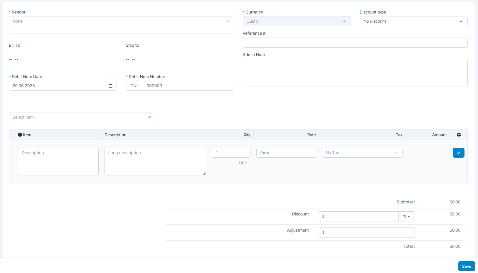 - ნაბიჯი 2. In the დამატება New Debit შენიშვნა page, fill the following details: