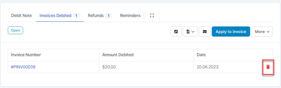 - ნაბიჯი 1. Hover over a Debit შენიშვნა -> click Debit შენიშვნა Number hyperlink