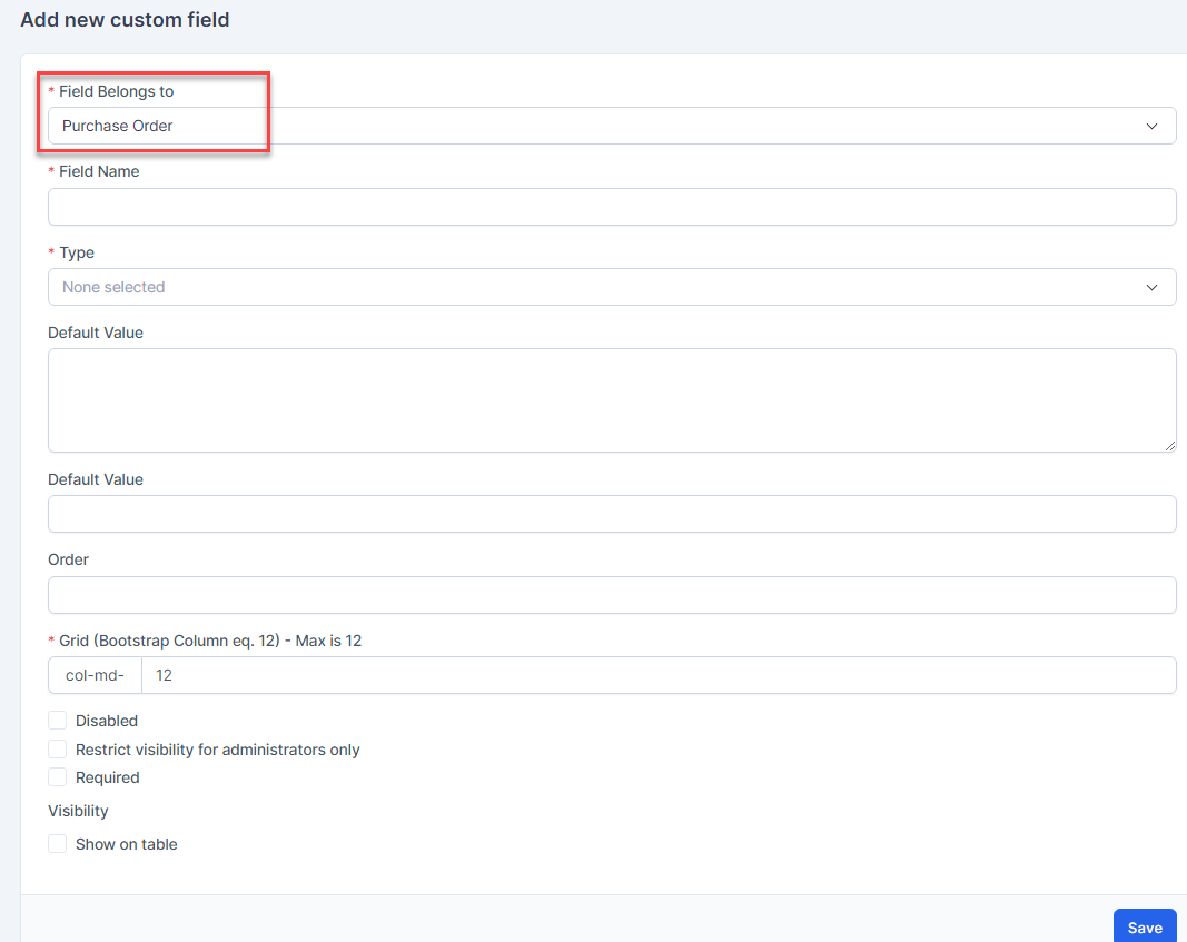 - შესყიდვები რიგითობაChoose “Field Belong to” = შესყიდვები რიგითობა