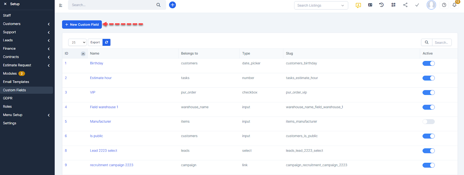 - მომწოდებელი Stepp 1. Go to Setup -> Custom field -> click New Custom Field