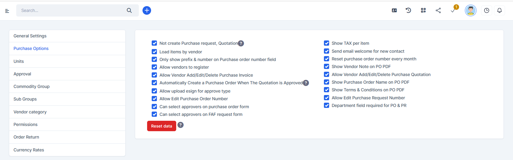 - Load items by vendor: If you enable this setting, when creating a purchase order or quotation, the items will load according to the selected vendor. Conversely, if this setting is not enabled, all existing items will be displayed.