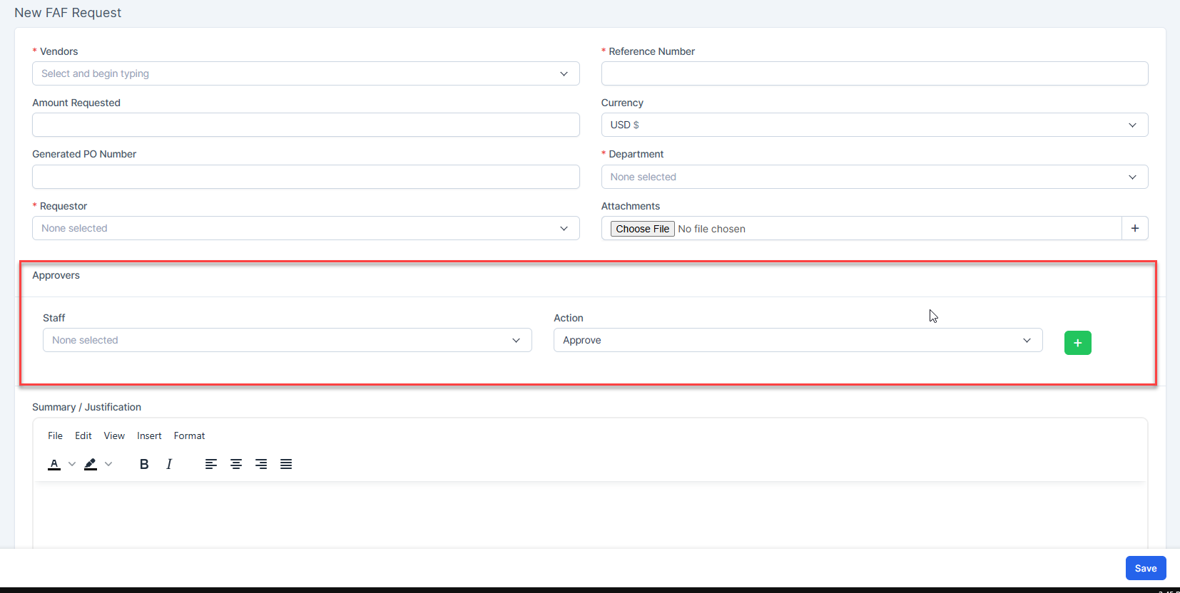 - Can select approvers on FAF request form: allows you to choose an approver for each FAF without depending on the approval setting.