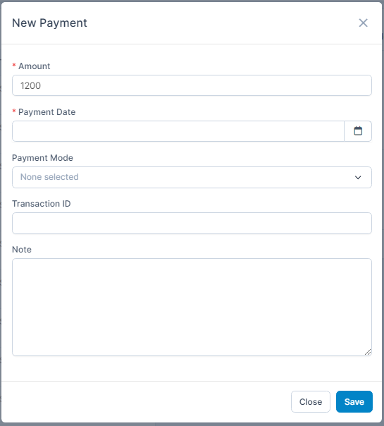 ნაბიჯი 3. Enter the amount to pay, Select Payment Date and Payment Mode -> then click შენახვა