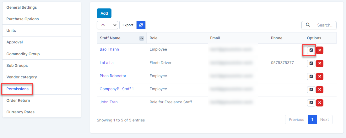 - ნაბიჯი 2. Select Permissions menu -> Select permission need to be edited and click რედაქტირება