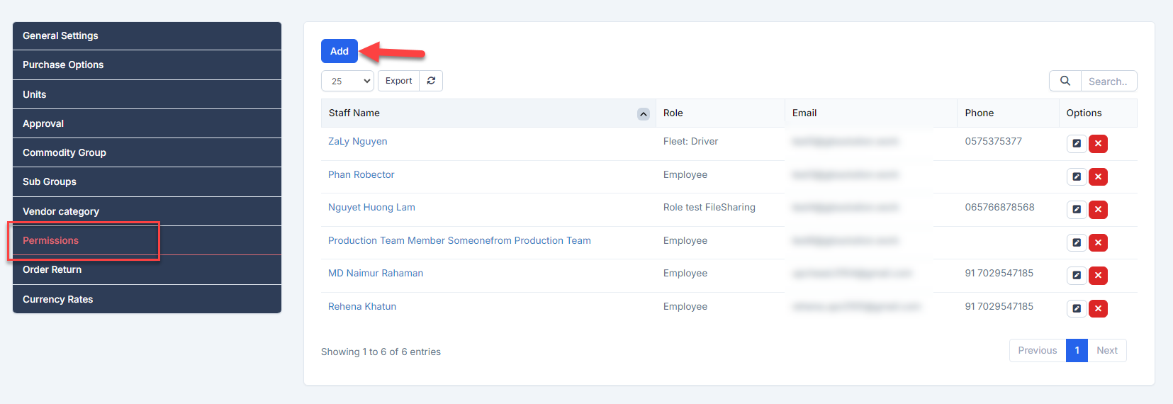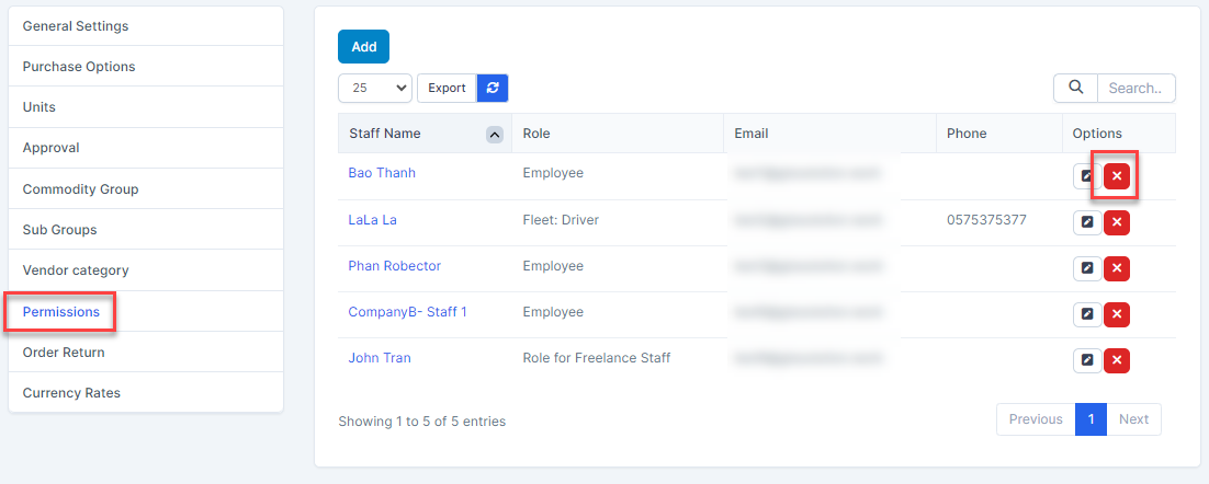 - ნაბიჯი 1. Go to პარამეტრები menu under შესყიდვები module from the left sidebar