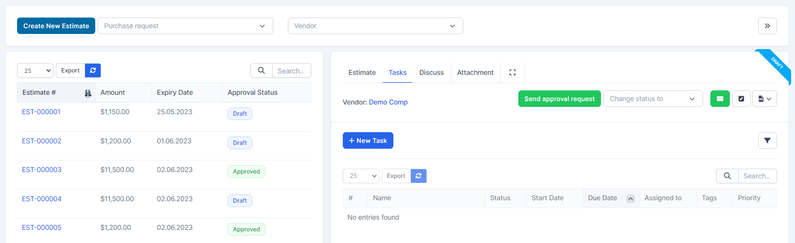 Quotations can be created in both admin portal and vendor portal.
