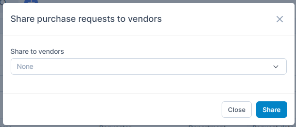 ნაბიჯი 2. In the Share purchase requests to vendors, select the vendor and click Share button
