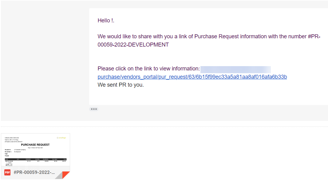 In case the purchase request has a status of Draft or Rejected, the purchase request cannot be shared with the vendor