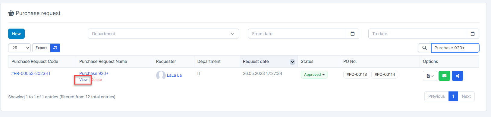 - ნაბიჯი 1. Select the approved შესყიდვები Request -> Click