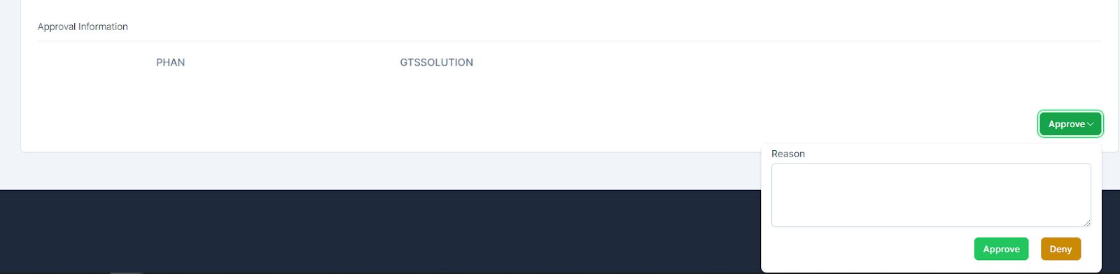 3. Log in to the approver account -> click on the notification requesting approval -> Click the დამტკიცება button -> enter the content in the Reason field (if any) -> select დამტკიცება or Deny. ⇒ successful approval notification ⇒ შესყიდვები Request creators get notified.