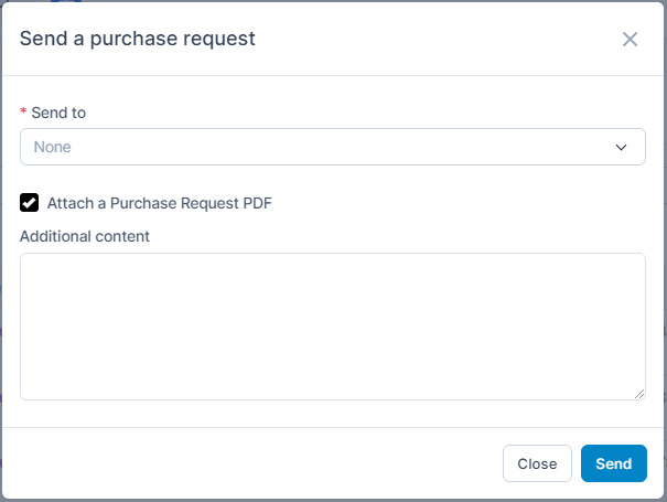 1. Select the contacts to send this purchase request2. Check/uncheck Attach a შესყიდვები Request PDF3. Enter the დამატებაitional content - Step 3. Click Send