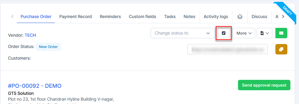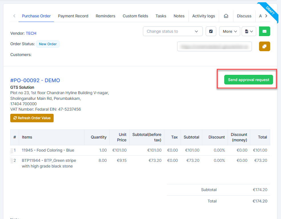 - ნაბიჯი 3. Go to purchase order detail -> select "Send approval request" button
