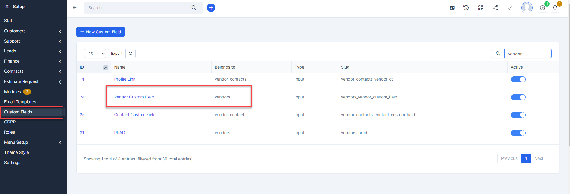 - ნაბიჯი 4. If we need to add some information to the registration form, we can create custom fields belong to vendors