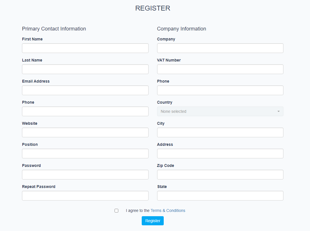 In the Register page, enter information in the fields → then check “I agree to the Terms & Conditions” → Then click Register