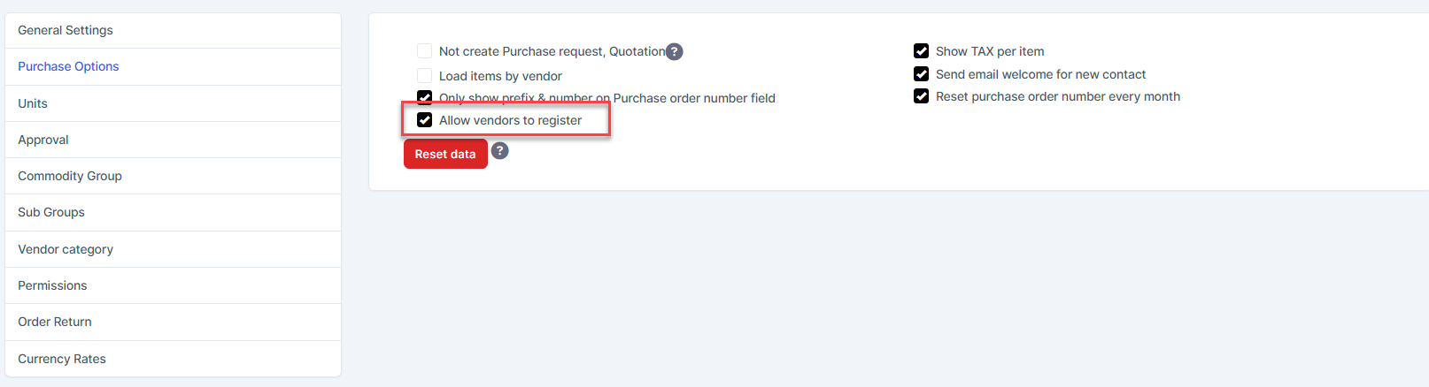 - ნაბიჯი 3. Select შესყიდვები Options menu -> Enable "Allow vendors to register"