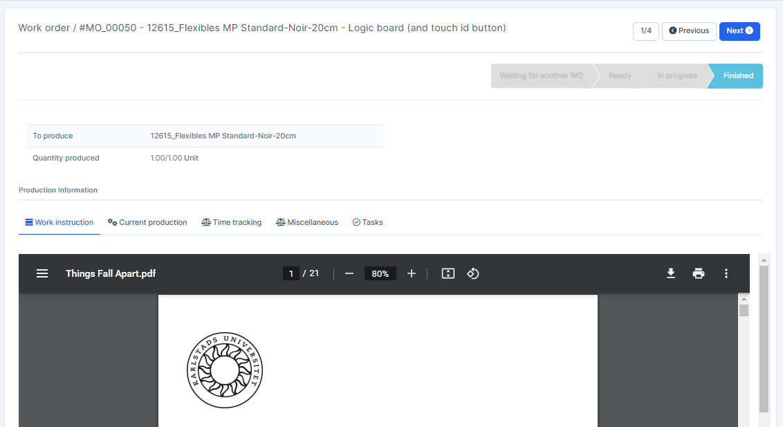 - Work instruction tab: show documents uploaded from routing detail -> operation